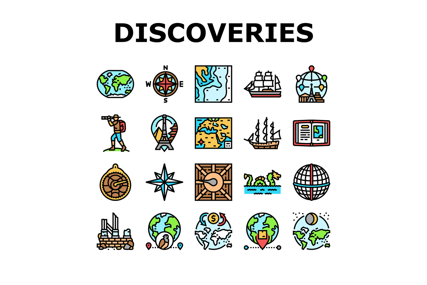great geographical discoveries icons set vector example image 1
