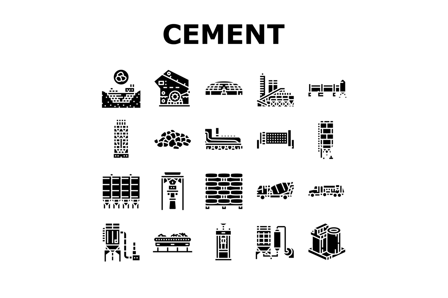 cement production gypsum icons set vector example image 1