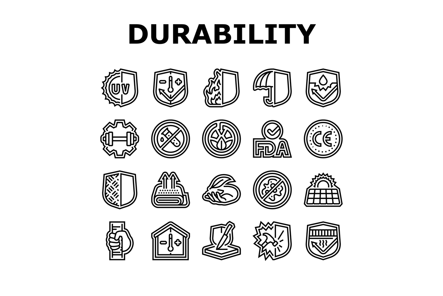 protection durability product icons set vector