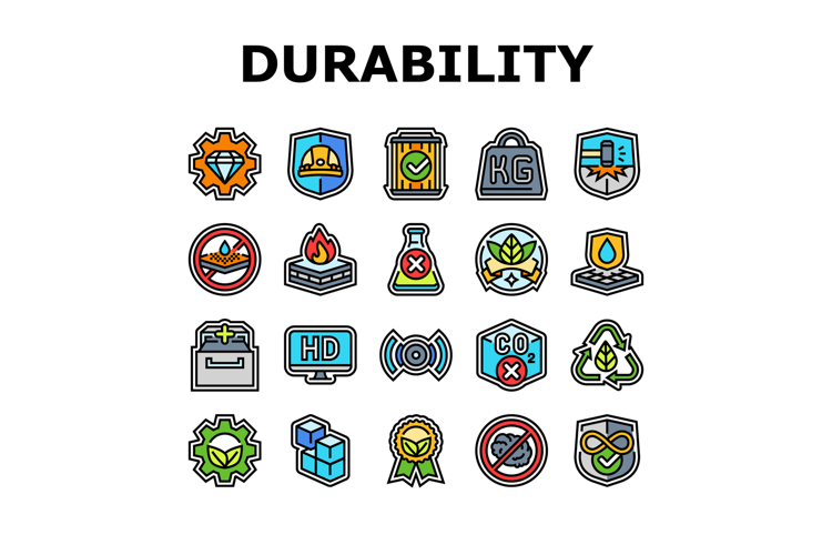 strength durability product icons set vector