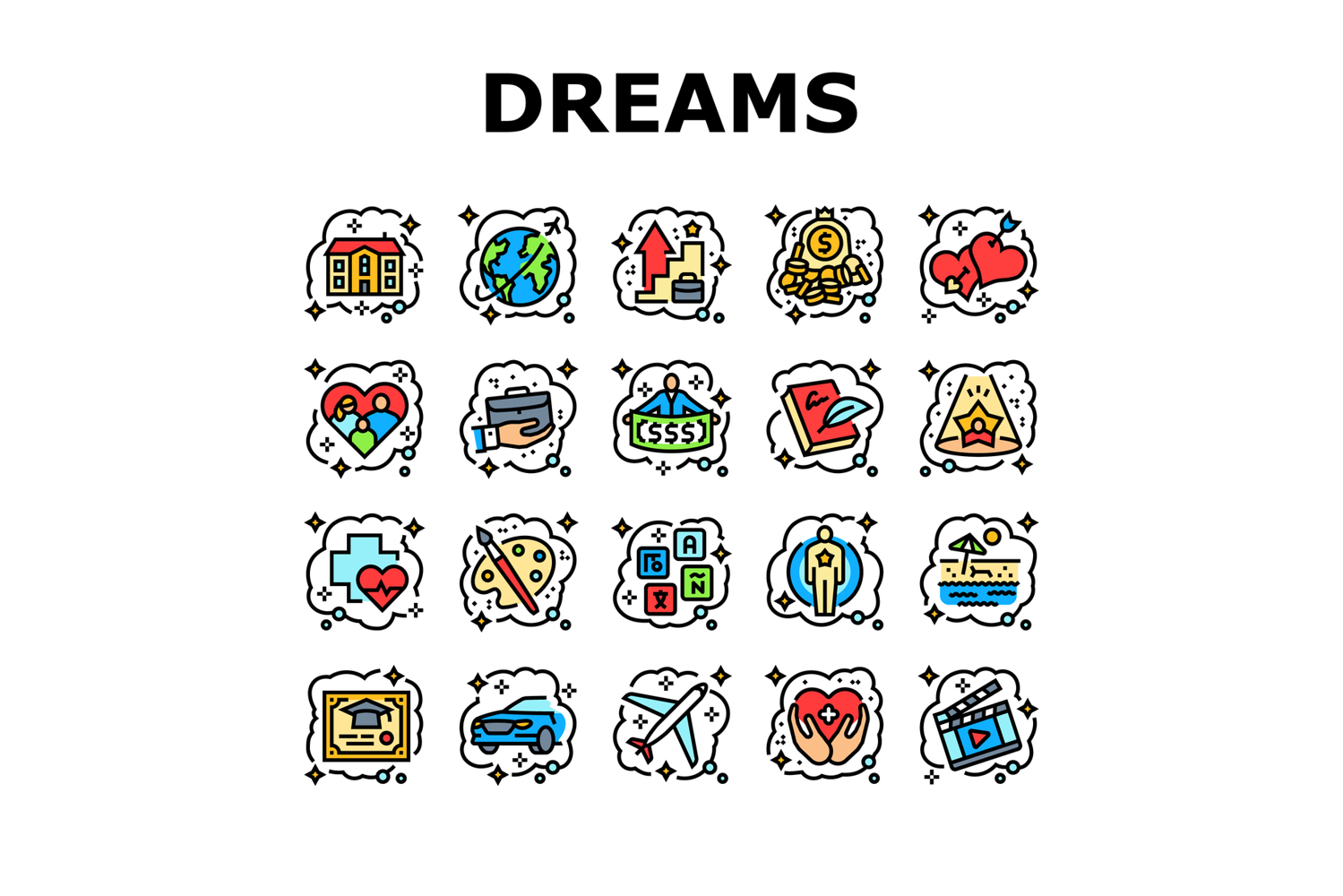 human dreams icons set vector example image 1