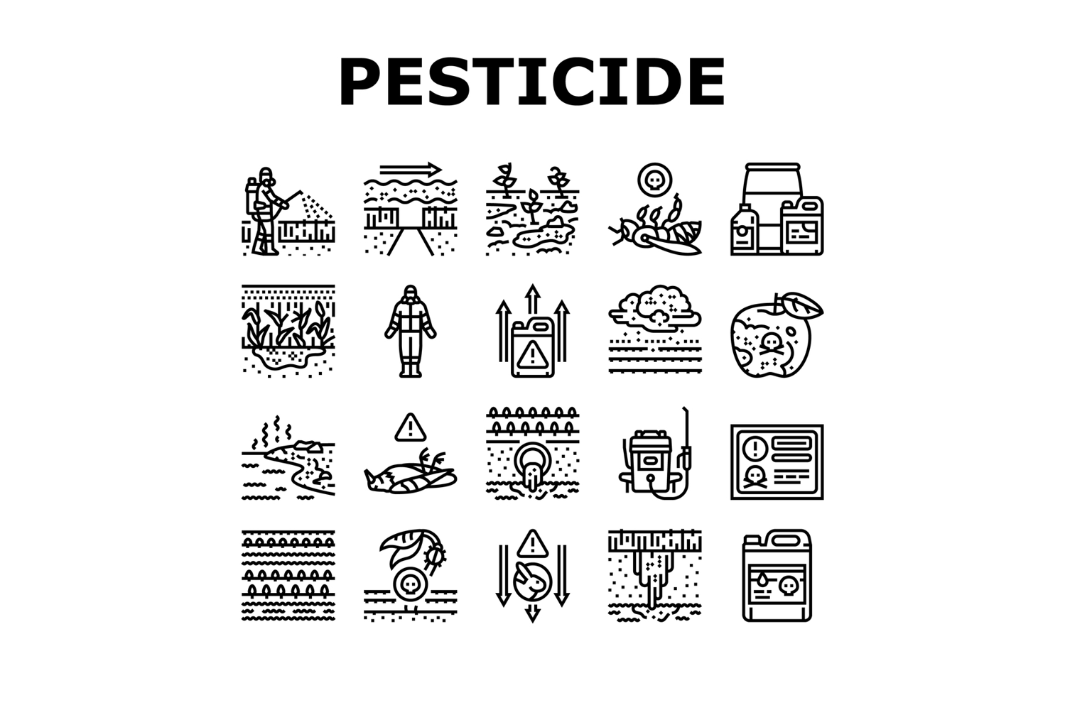 pesticide pollution agriculture icons set vector example image 1