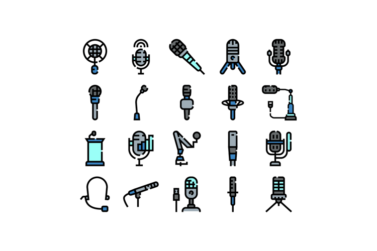 Microphone icon set for podcasting and studio essentials