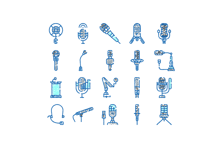 Vector Sketch Icons Collection Equipment Sound Podcast Audio Broadcast Microphones