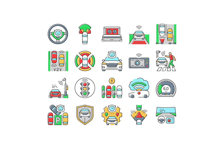 autonomous vehicle self driving icons set vector example image 1