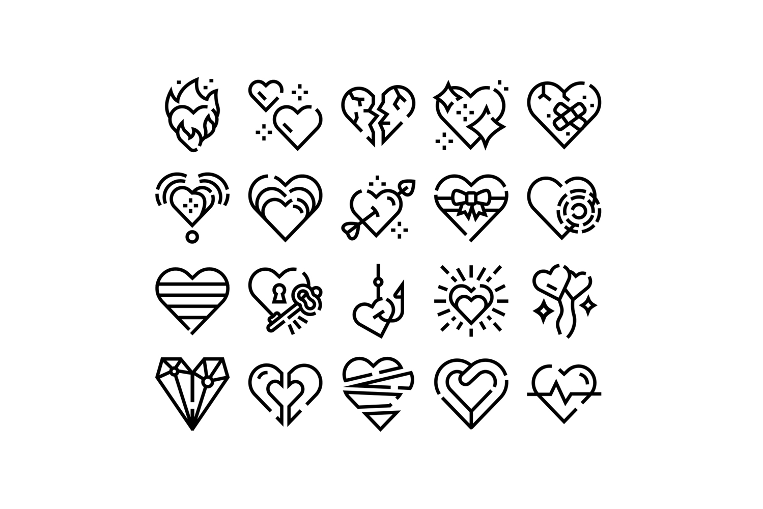 Diverse heart line icons representing love and emotion