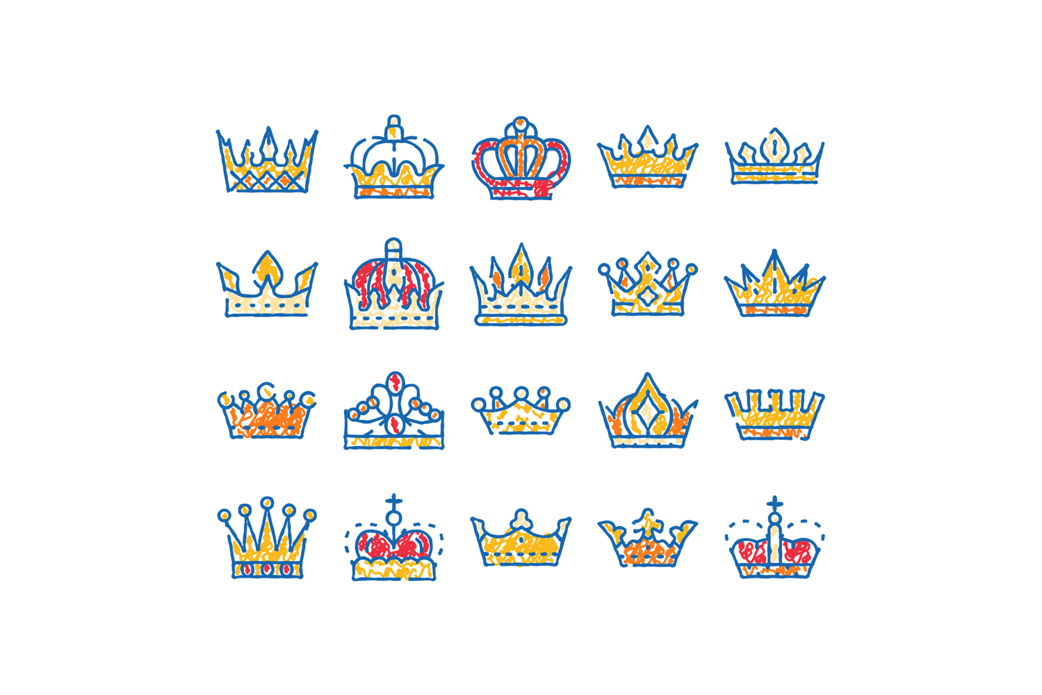 Similar Design Products to Crown collection doodle drawing icons representing royalty a