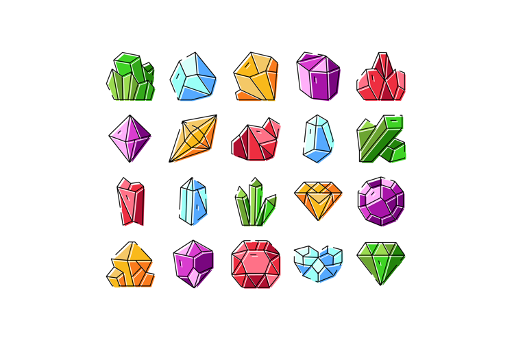 Illustration Vector Outline Colorful Icons Crystal Diamond Jewel Gem Mineral