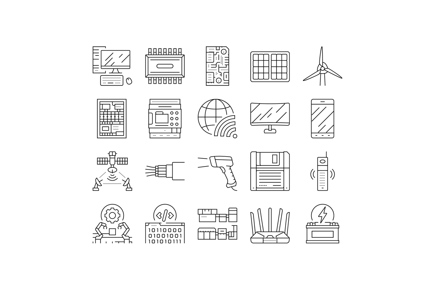 industry 3.0 cybernetics sensors icons set vector. data analytics, ai machinelearning, connectivity, efficiency, innovation industry 3.0 cybernetics sensors black contour illustrations