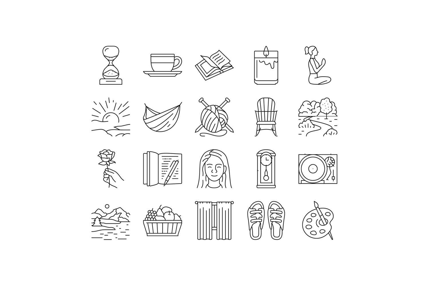 slow living mindfulness balance icons set vector