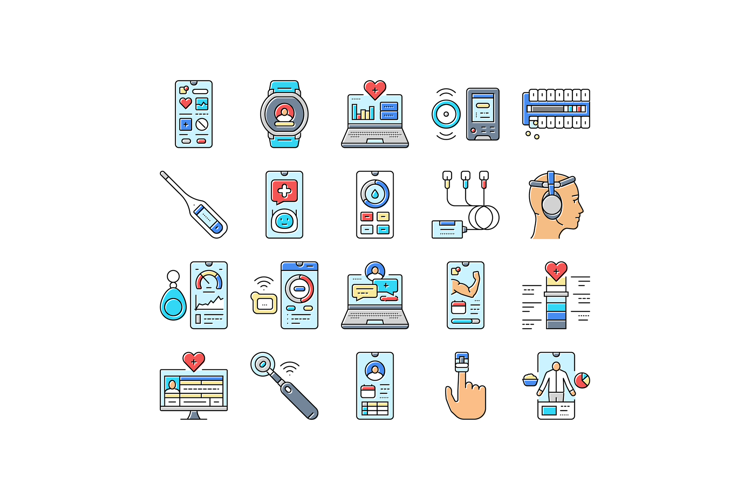 personalized health tech icons set vector example image 1