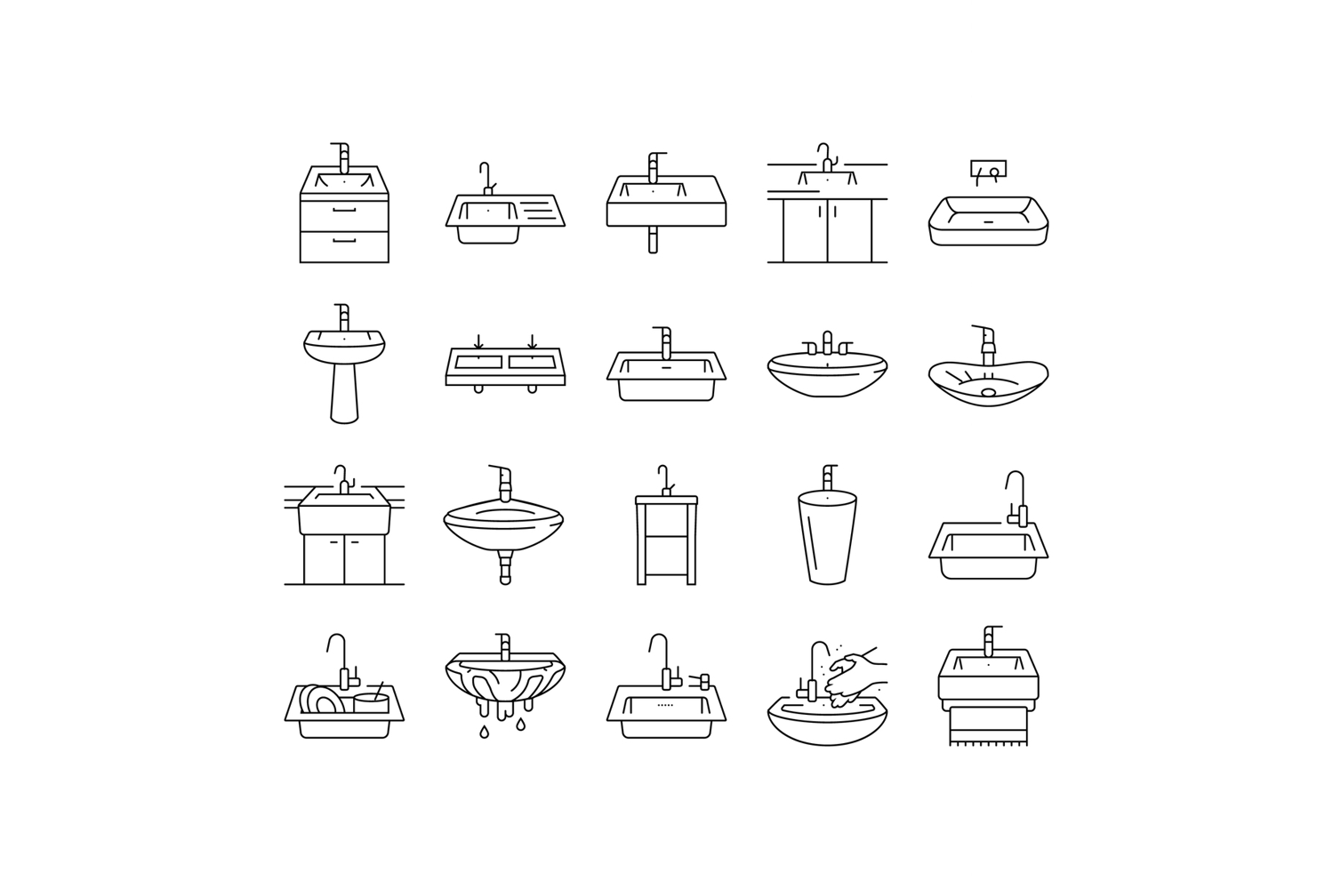 Similar Design Products to sink porcelain drain faucet icons set vector