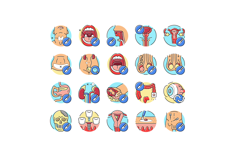 surgery health medical skin icons set vector