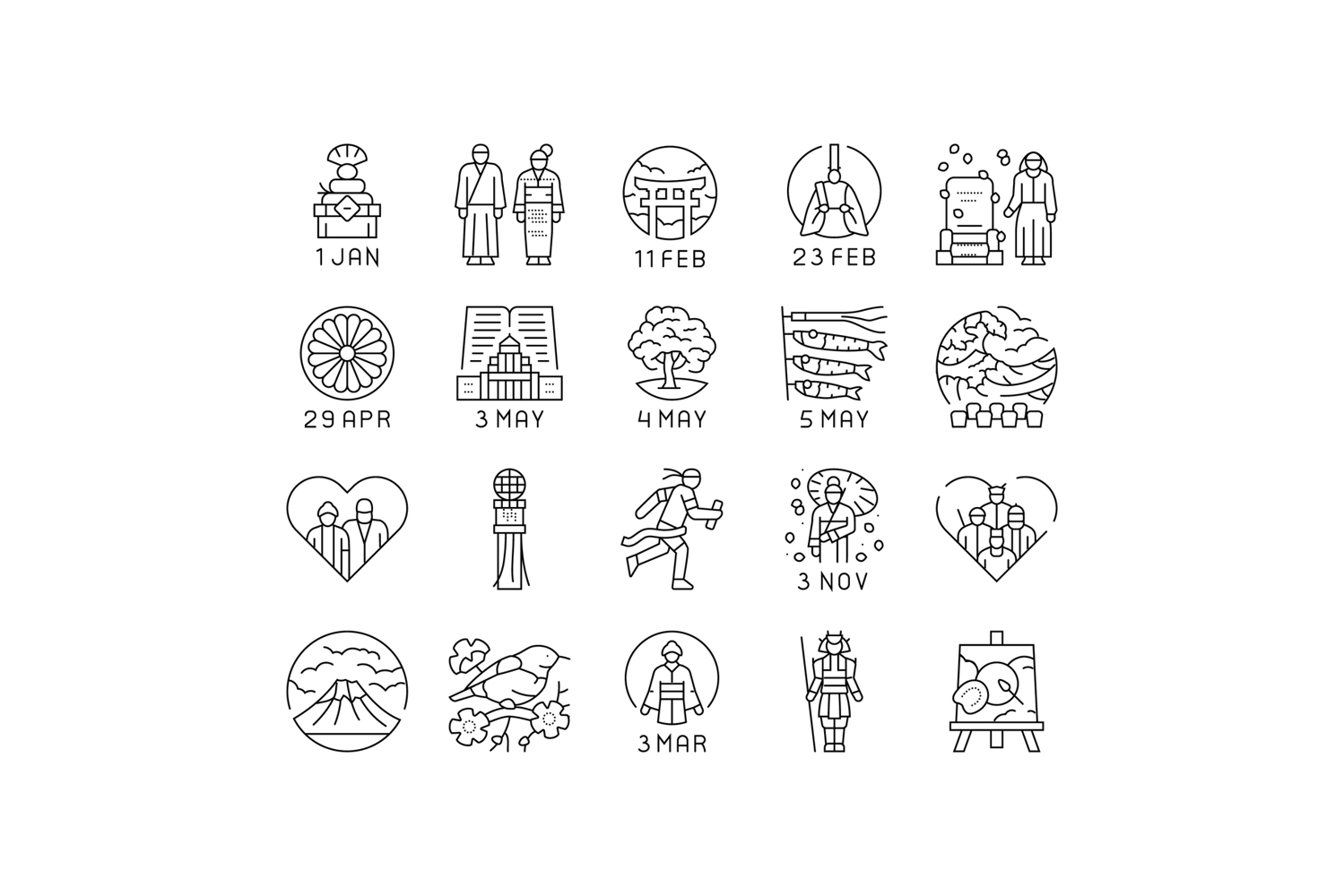 japanese holidays national asia icons set vector example image 1