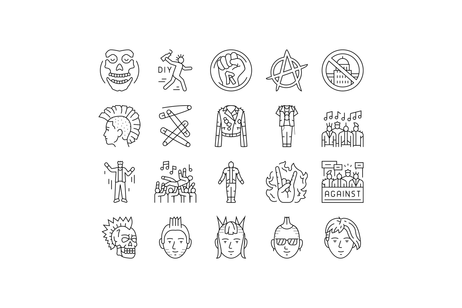 punk retro element hand art icons set vector example image 1