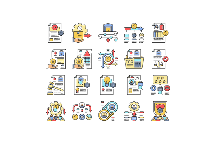business process automation icons set vector. optimization efficiency, workflow strategy, innovation management, analysis business process automation color line illustrations