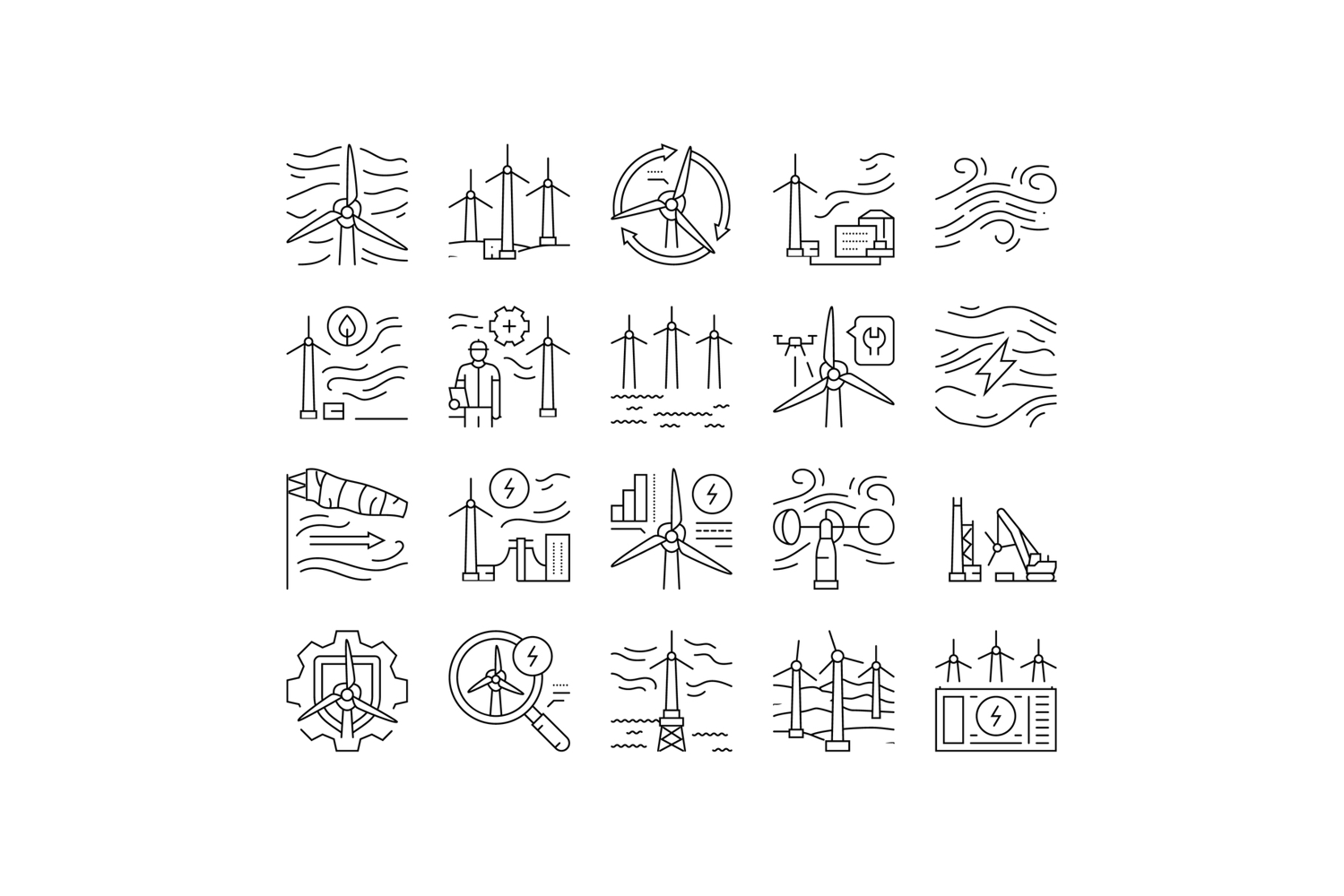 wind turbine power energy farm icons set vector example image 1