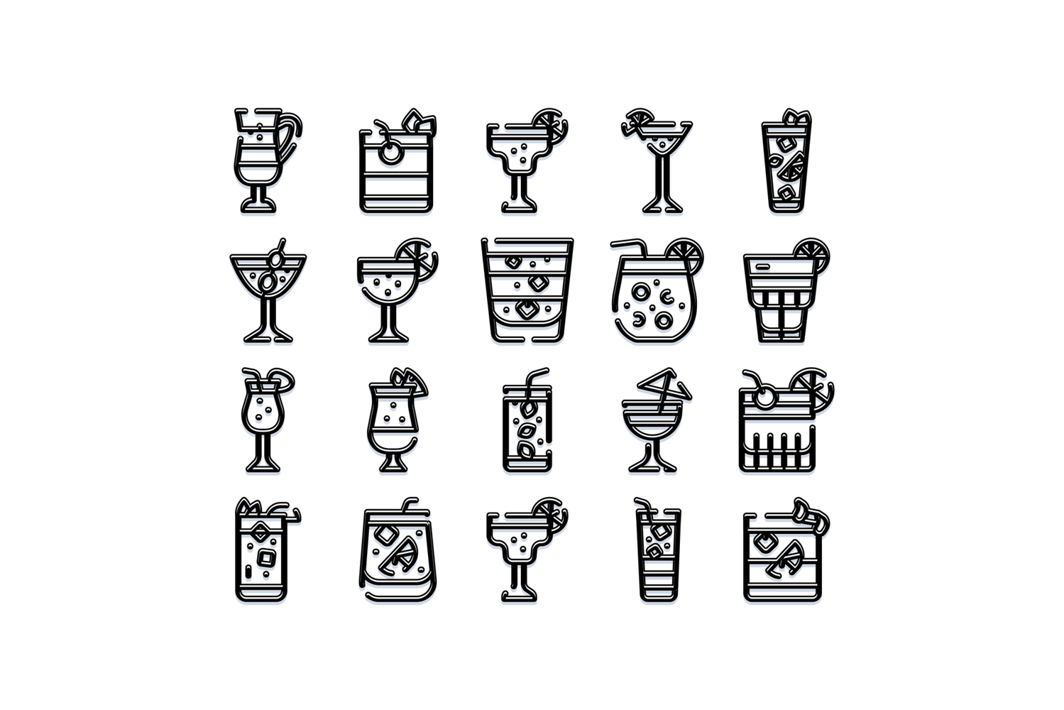 Vector Drinks Icons Collection Set Menu Bar Cocktails Beverages Refreshments