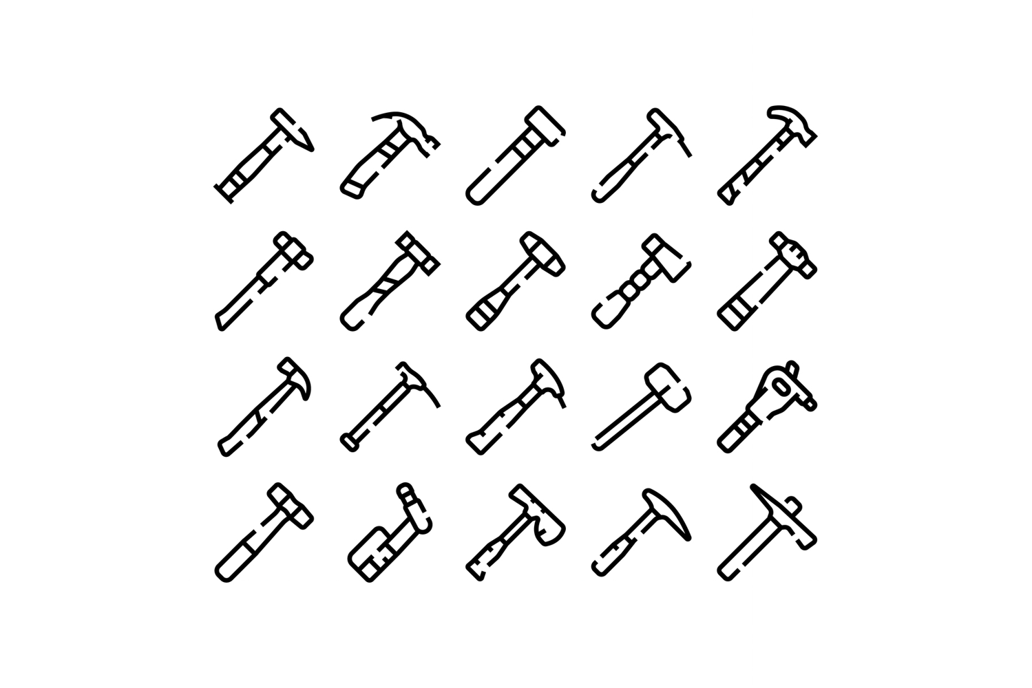 Line Vector Icon Art Set Hammer Tool Construction Sledgehammer Mallet