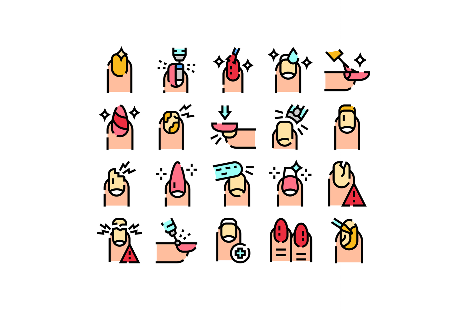 Manicure nail care extension treatment icon collection