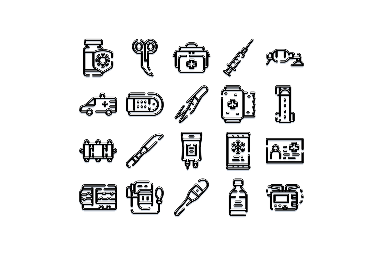 First aid and emergency medical care equipment icons