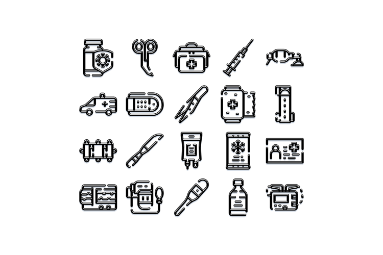 First aid and emergency medical care equipment icons example image 1