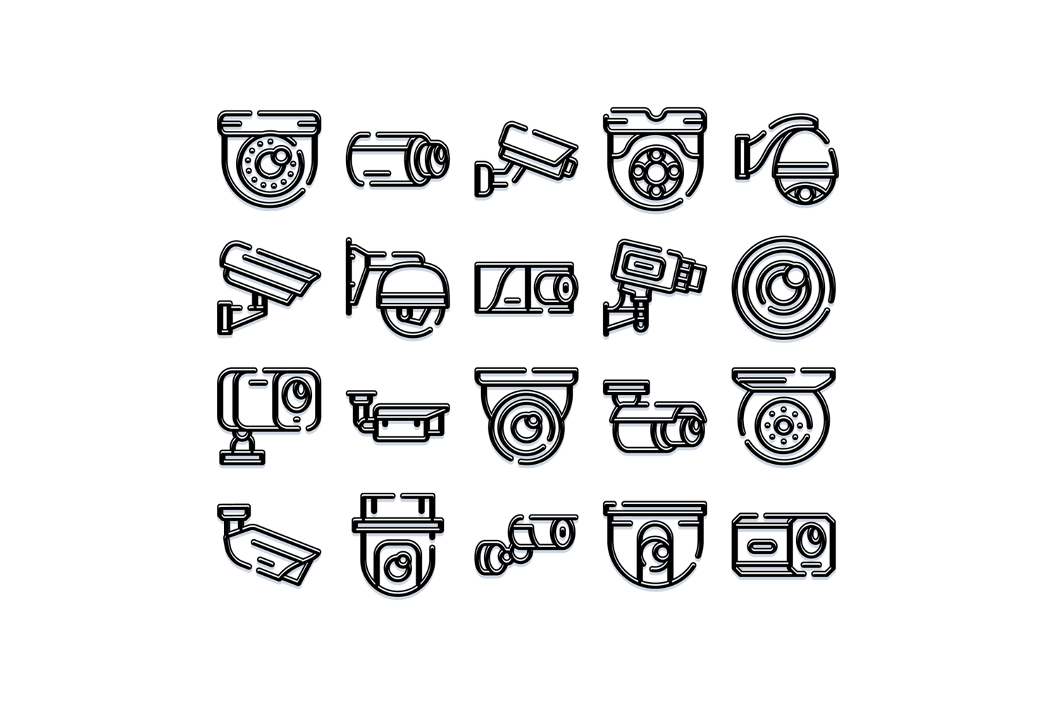 Line Art Icons Technology Camera Protection Security Safety Surveillance Monitoring