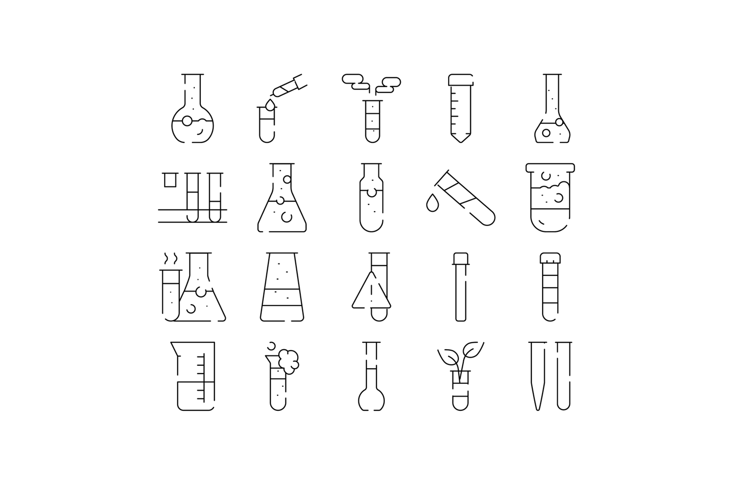 Laboratory glassware outline icons set for chemistry researc example image 1