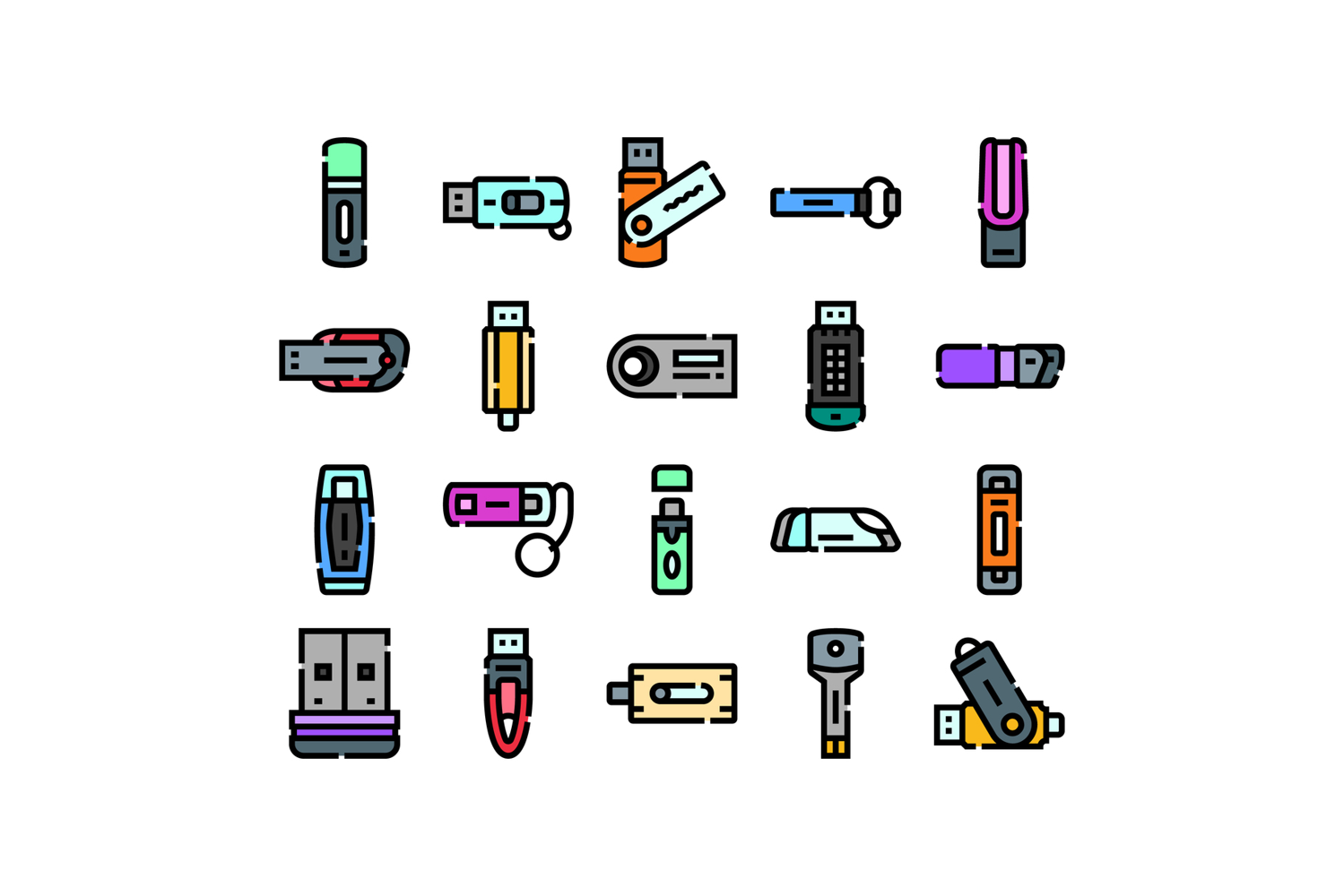 Usb flash drives presenting various designs and colors, symbolizing digital data storage, portable memory, and modern computer technology for transferring information