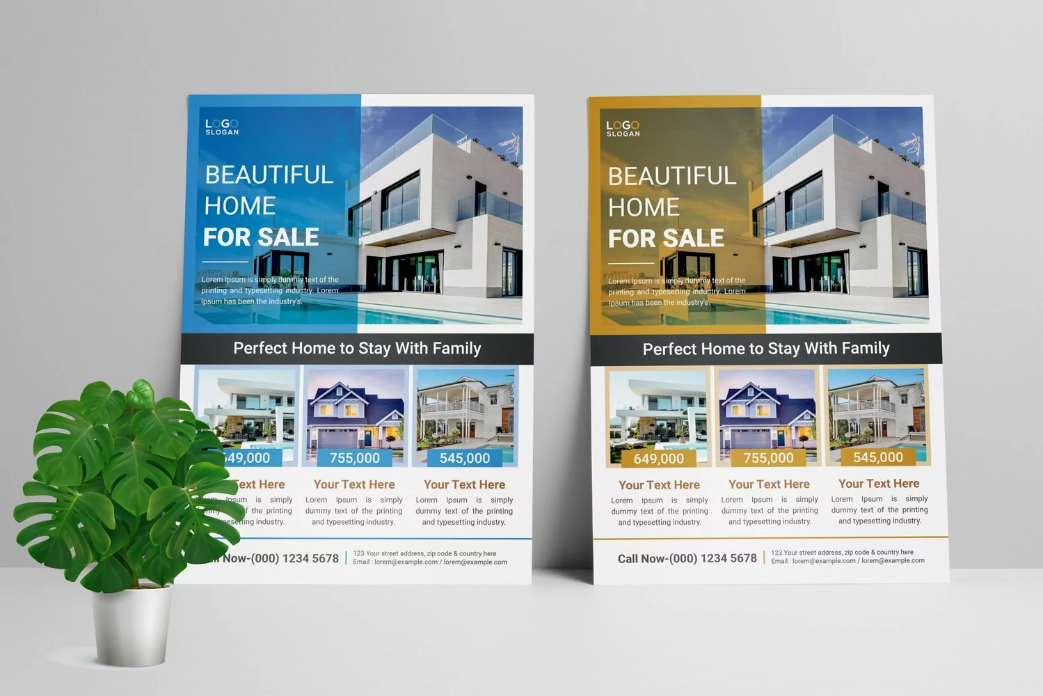 Professional, clean and modern Modern Clean Real Estate Flyer. It is suitable for any project purpose and all types of Real Estate business. Everything you see is editable right in Adobe Illustrator. All texts are set with free fonts. This Modern Clean Real Estate Flyer is a great tool for promoting your business.