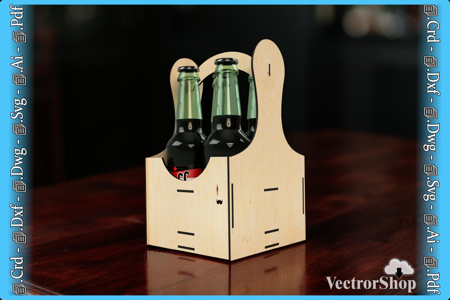Laser Cutting Vector for 4-Beer Box - Template for CNC example image 1