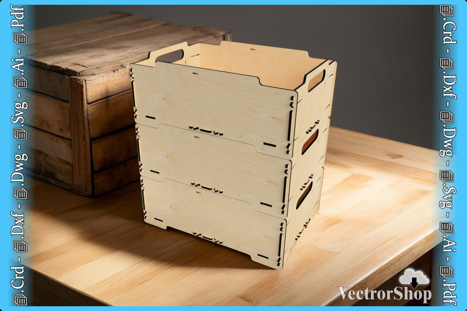 Stackable Basket - Ideal for Home Organization and Storage, Decorative Template for CNC, Glowforge and Laser - Instant Vector Download