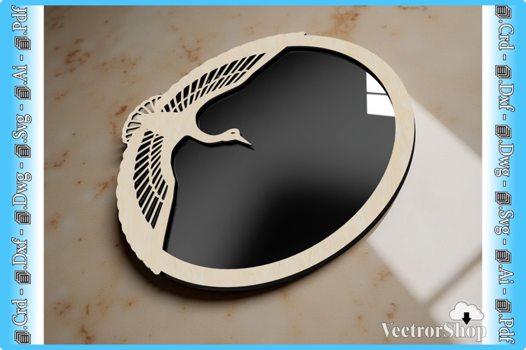 Wall mirror with bird decoration, perfect as a gift; decorative mirror for CNC laser cutting; CNC cutting templates; laser cutting design