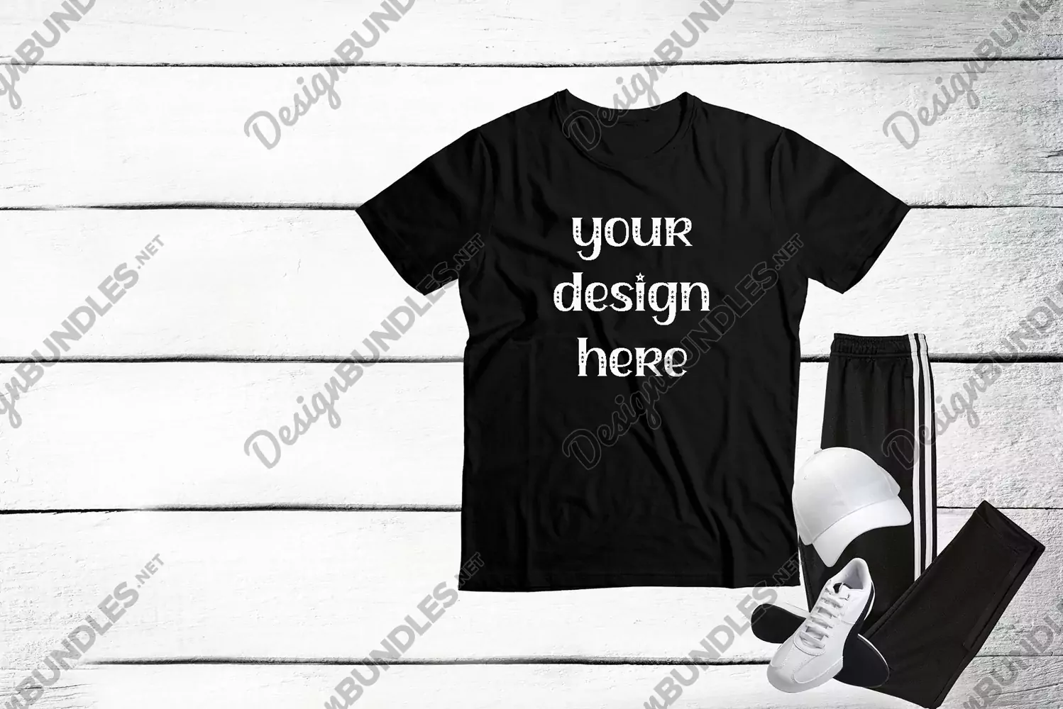 Black Gildan sport T-shirt Mockup Black TShirt Flat Lay example image 1