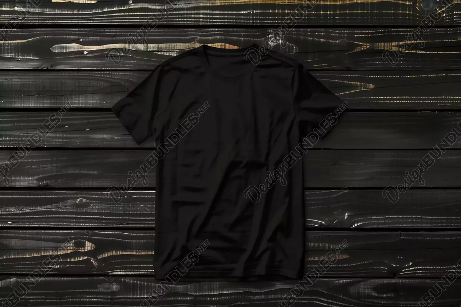 Gildan Black T-shirt Mockup on wooden background