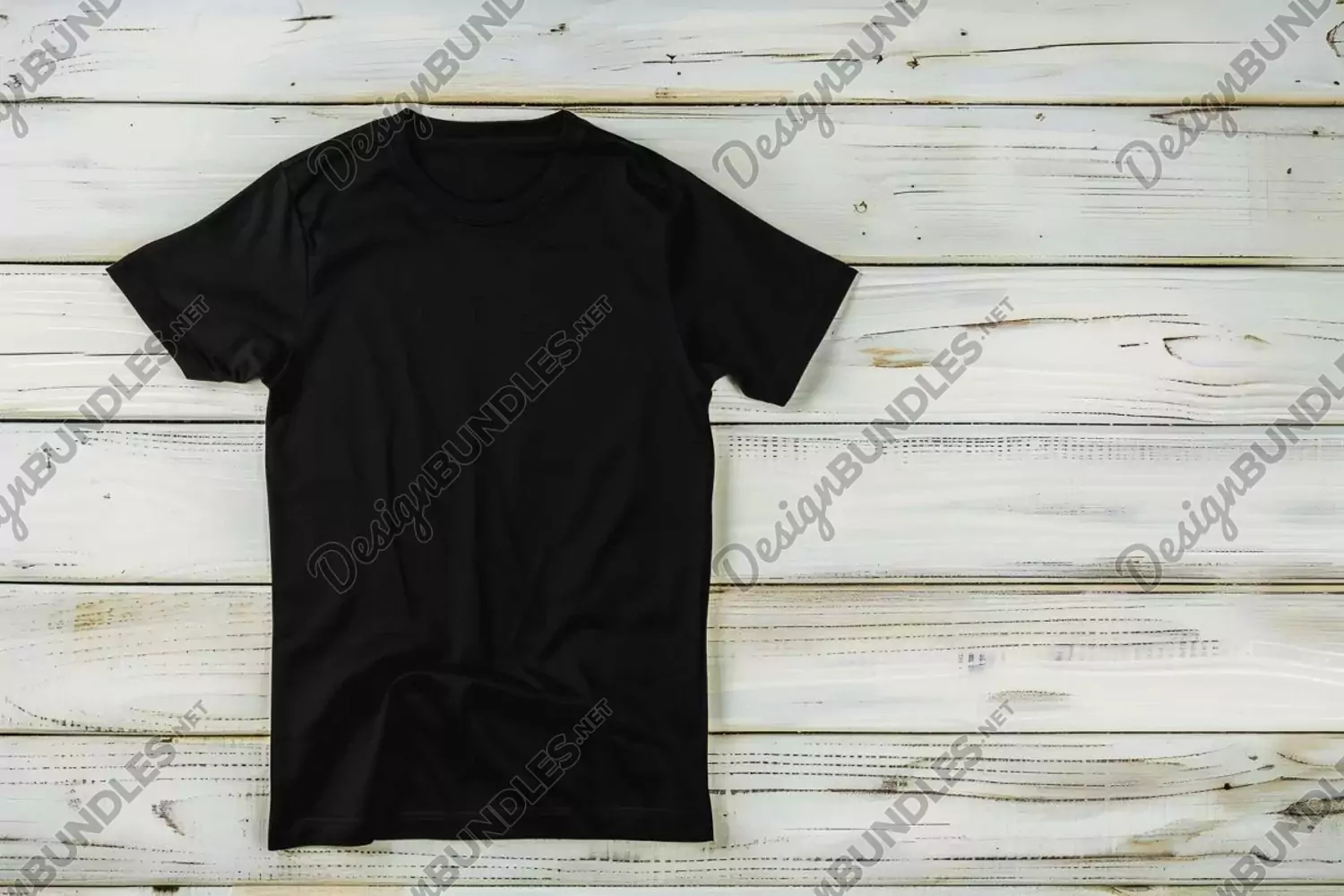 Gildan Black T-shirt Mockup on wooden background example image 1