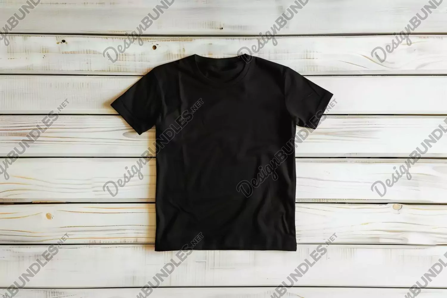 Gildan Black T-shirt Mockup on white wooden planks