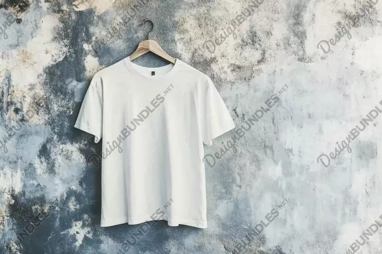 mockup plain white t-shirt hanging on a cement wall example image 1
