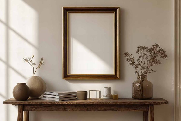 Digital file frame mockup in home interior