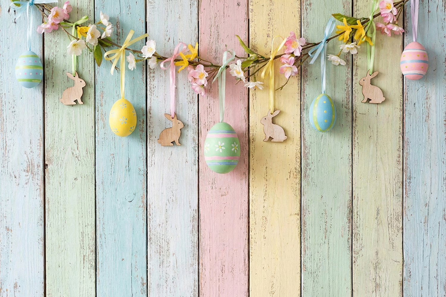 Colorful Easter Eggs on Wooden Background  5056 × 3392px 300dpi jpg file