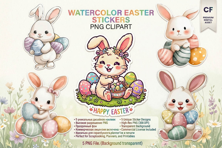 Cute Easter Bunny & Eggs PNG Crafts & Sublimation example image 1