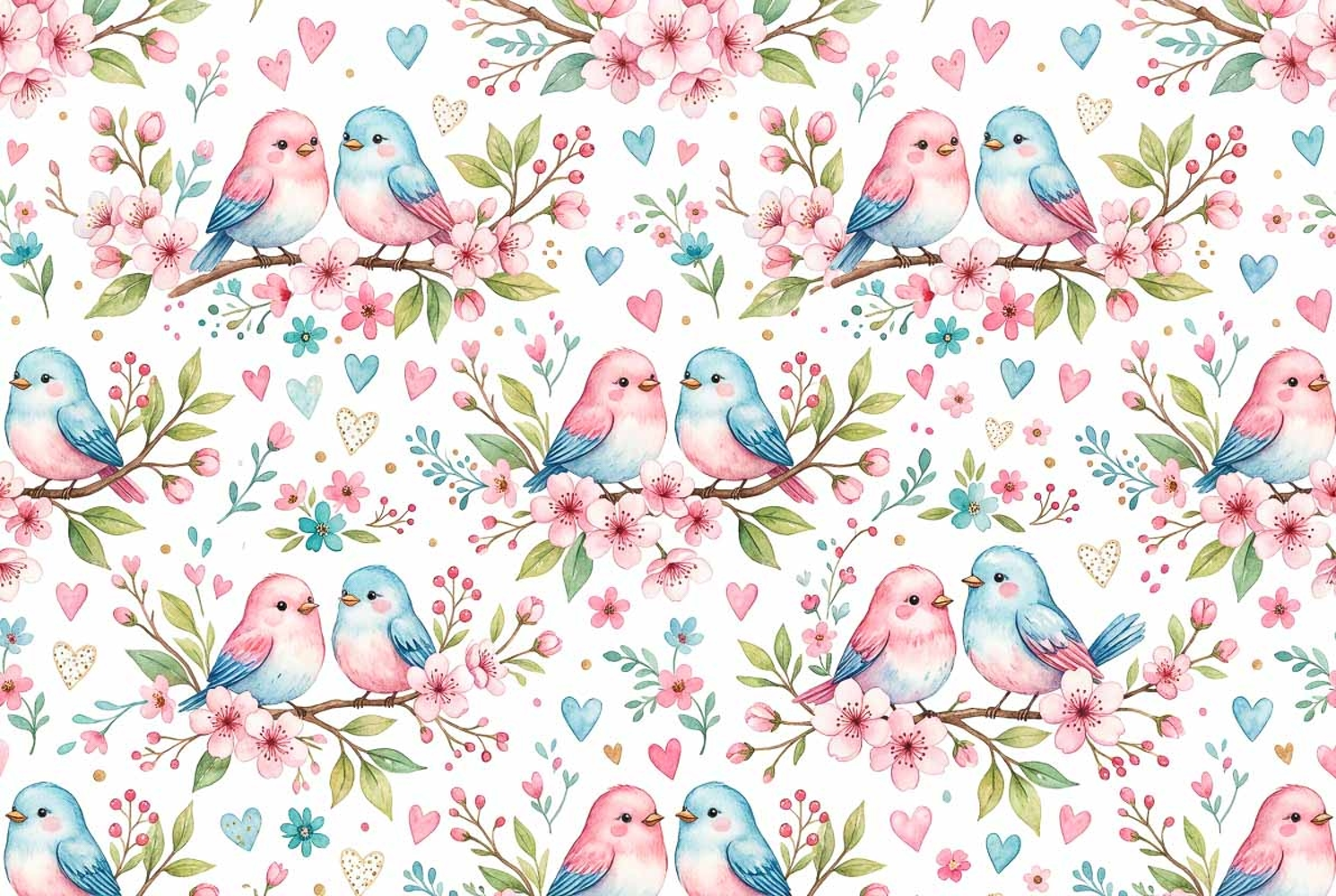 Watercolor Birds Floral Pattern Seamless Seamless Pattern Floral Pattern Watercolor Floral Mother's Day Peony Roses