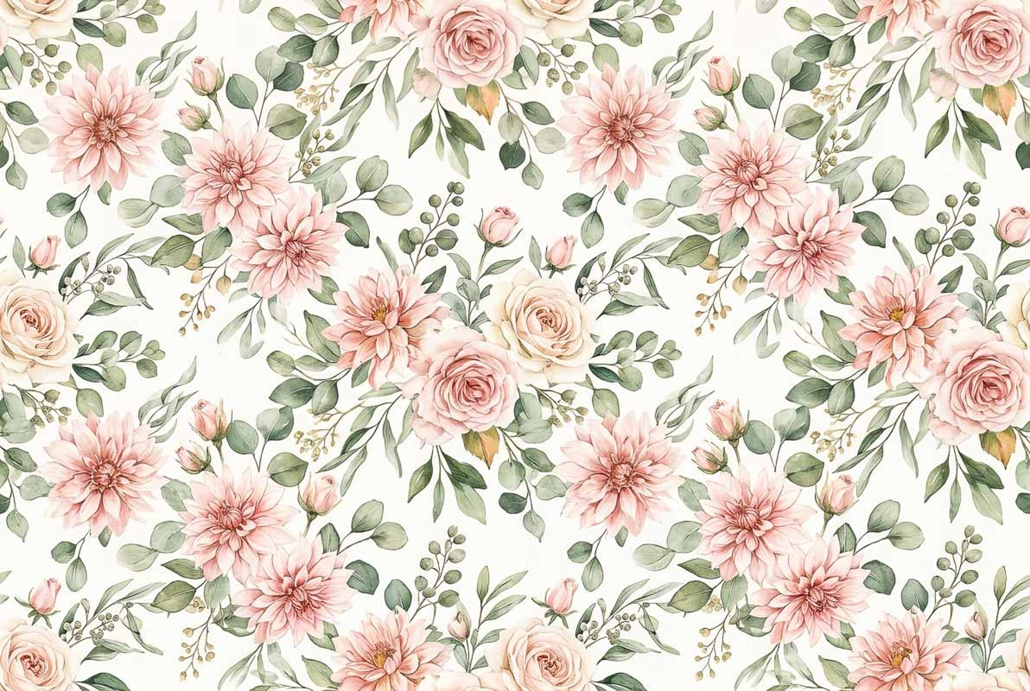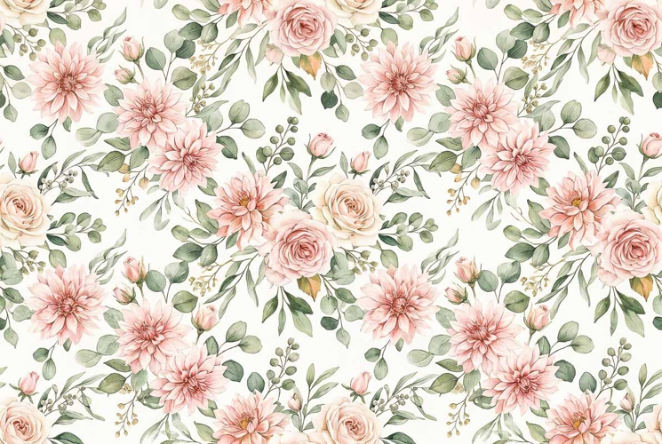 Watercolor Seamless Floral Pattern, romantic Mother's Day surface design, 300 dpi, repeat pattern 6000x4000px
