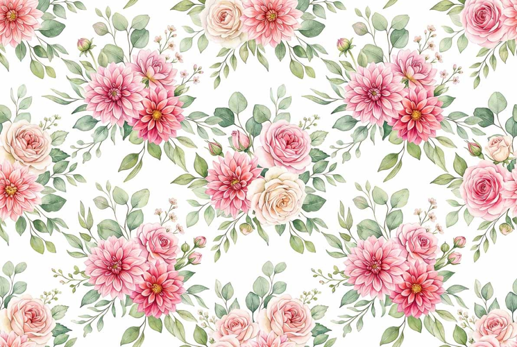 Watercolor Seamless Floral Pattern, romantic Mother's Day surface design, 300 dpi, repeat pattern 6000x4000px