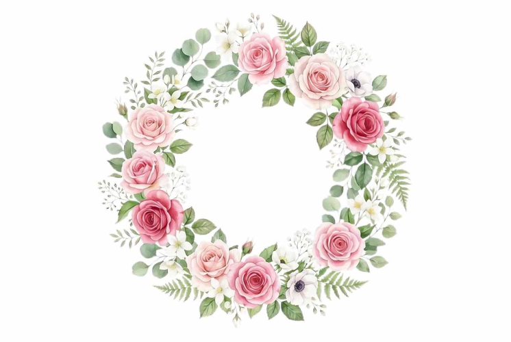 Watercolor round flower shape, spring flowers, Mother’s Day clipart, isolated on white, transparent background PNG, 300 dpi, high detail 3000px