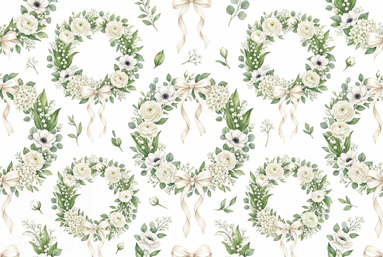Seamless Pattern Ribbon Bows Watercolor Wreaths Elegant Wedding White Flowers Bow Pattern Bridal Florals Floral Bows Wreath Pattern Bridal Wreaths