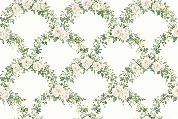 Watercolor seamless pattern with elegant floral arches white roses and greenery, Wedding Season repeat design, 300 dpi, surface pattern design