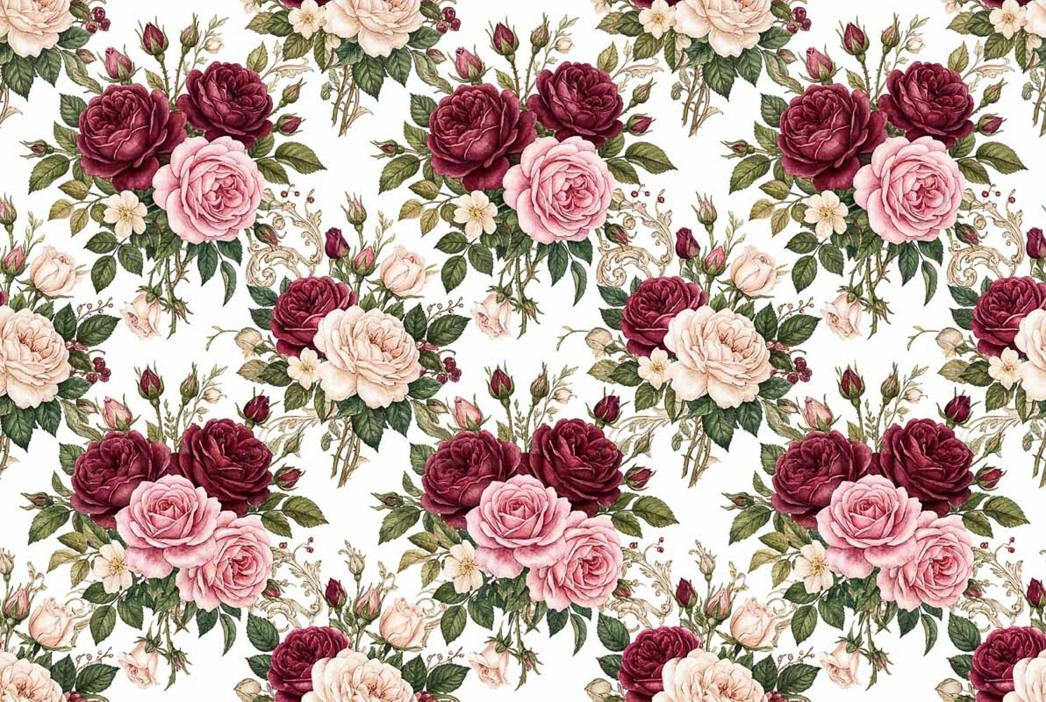 Victorian watercolor floral pattern,