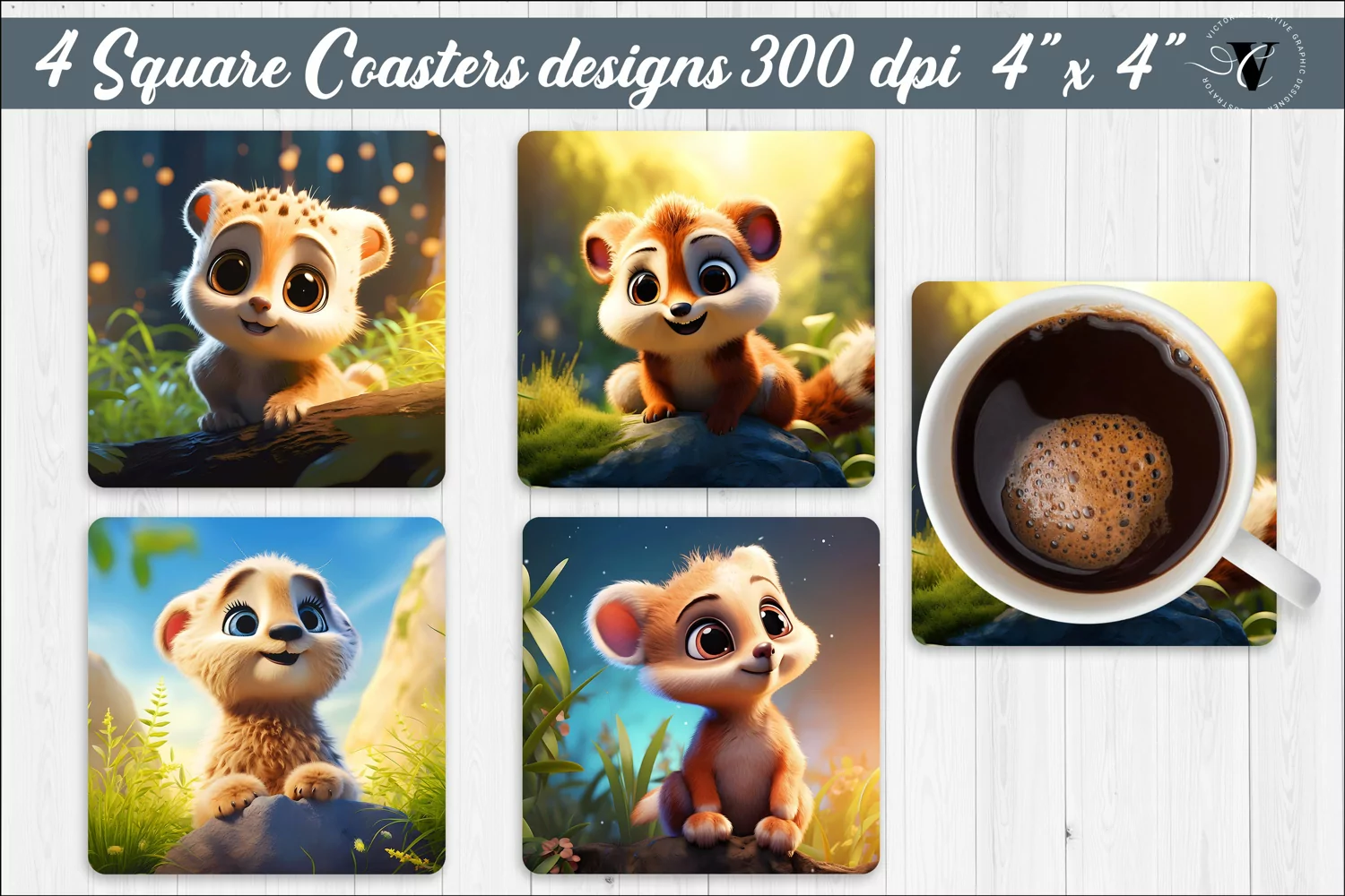 Square Coasters, Square Coasters sublimation design, baby animals sublimation, baby animals