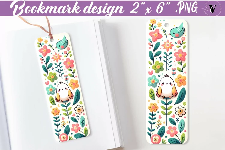 Bookmark sublimation with Spring flowers and Bird, Printable designs